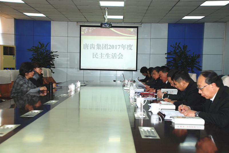2018年2月6日,唐齿集团党委2017年度民主生活会在集团208会议室举行,市国资委党委委员、副主任崔秀华和市国资委财务监管处处长蔡霞,集团公司党委书记、董事长郉宝昌及班子成员参加了会议。