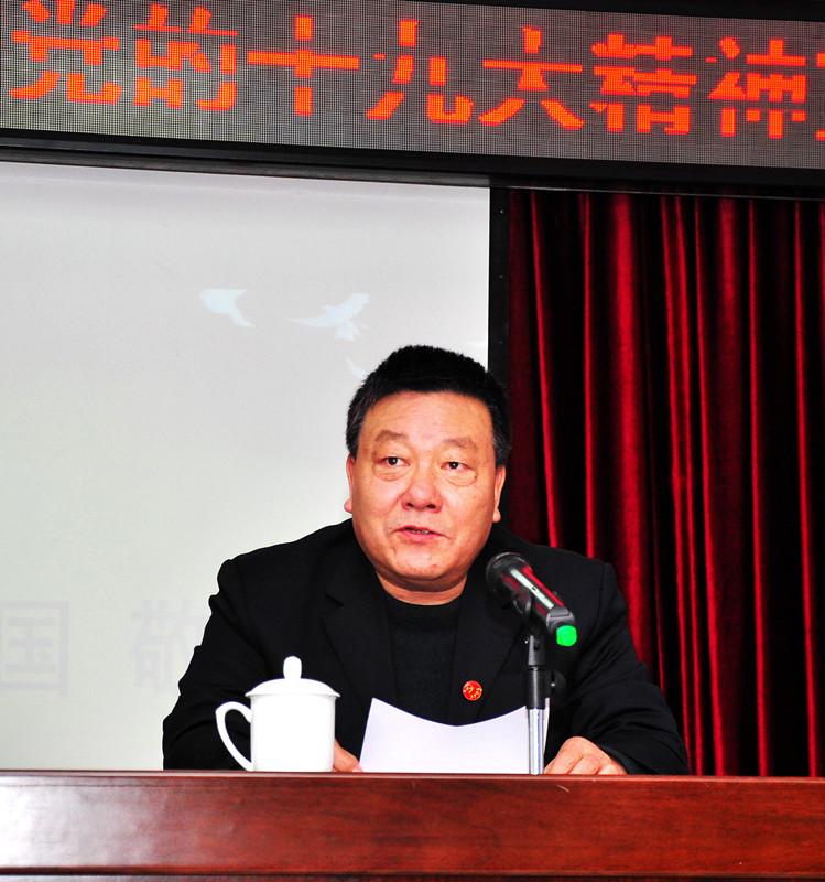 市国资委副调研员刘德维同志以《伟大的祖国 敬爱的党》为主题向全体党员干部解读宣讲十九大精神。会议在全体党员干部合唱《歌唱祖国》中拉开帷幕。德维同志从“中国共产党的九十六年”、“从历史走过的习近平同志为核心的治国理政的5年”、“中国的文化自信”三个篇章,带领全体党员干部重温了中国共产党的发展历史,深刻领悟到中华人民共和国成立的来之不易,体会了习近平总书记提出的中华民族伟大复兴的中国梦的深刻涵义和十九大精神的精髓。
