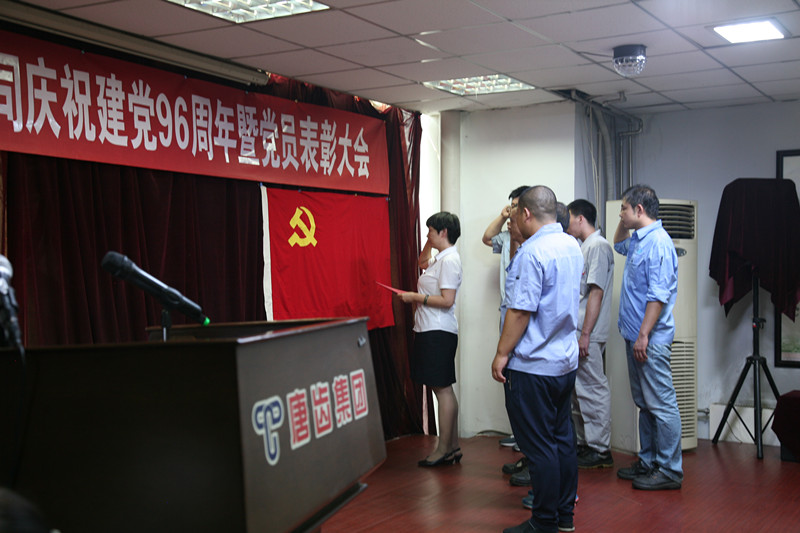 唐齿集团庆祝中国共产党建党96周年暨党员发展、表彰大会在国际歌中圆满落幕。