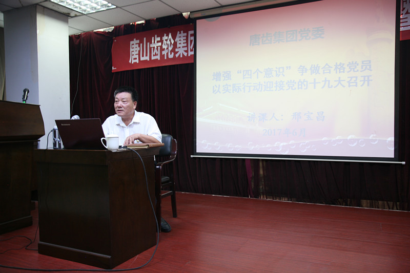 唐齿集团党委书记、董事长邢宝昌同志给全体党员讲了题为《增强“四个意识”,争做合格党员,以实际行动迎接党的十九大召开 》的党课。在党课上,邢书记围绕充分认识增强“四个意识”的意义、深刻理解“四个意识”的丰富内涵、准确把握“四个意识”的实践要求三个方面,用深入浅出的道理,丰富的警示案例,告诫所有党员同志,要切实把思想统一到中央和党的要求上来,强化增强“四个意识”的自觉性和坚定性,讲政治、守规矩,认真履行党员责任和义务,做一名合格的共产党员。