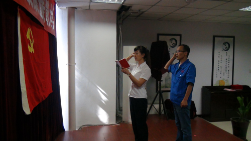 会上新党员在党旗下进行了庄严宣誓,老党员重温入党誓词,新老党员共同体会这庄严的时刻。张春明总经理宣布了关于表彰优秀共产党员的决定,今年共表彰了8名优秀共产党员,即通力公司程志兴、席志军,龙润公司刘丹、何雷,传动公司苏斌 、汽配城公司田长兴、集团本部黄霜晴、冯玉龙。随后,邢宝昌书记进行了讲话。