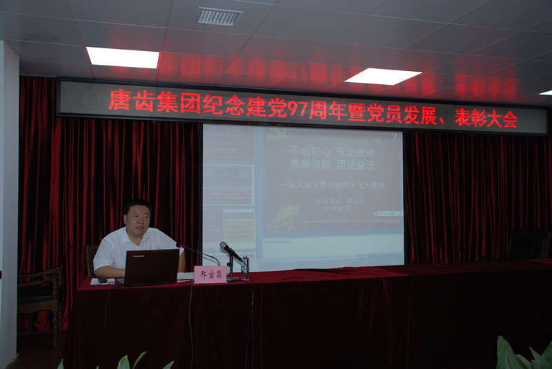 唐齿集团党委书记、董事长邢宝昌同志给全体党员讲了题为《不忘初心、牢记使命,高举旗帜、奋勇前进 》的党课,并要求全体党员,一要铭记党的伟大贡献,坚定信念跟党走;二要回顾唐齿发展历程,继往开来续新章;三要要展望企业发展未来,发奋图强立新功。