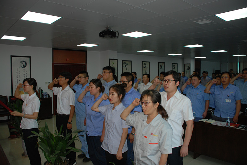 会上,8名新党员在鲜红的党旗下进行了庄严宣誓,所有参会的老党员也一起重温了入党誓词。随后,新党员代表发言,表示在以后的工作生活中,将努力完成党交给的任务,以实际行动来履行誓言,为党旗争辉。张春明总经理宣布了关于表彰10名优秀共产党员和5名优秀党务工作者的决定,并对受表彰的优秀党员和党务工作者进行了颁奖。