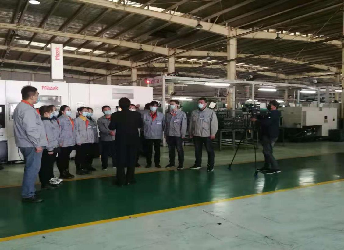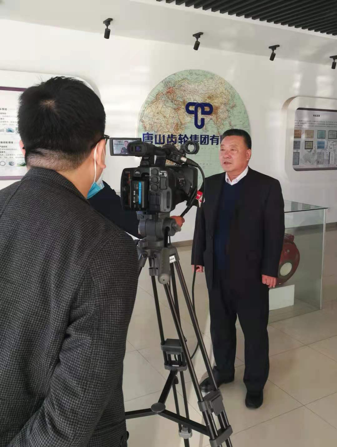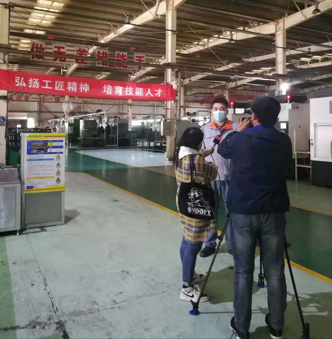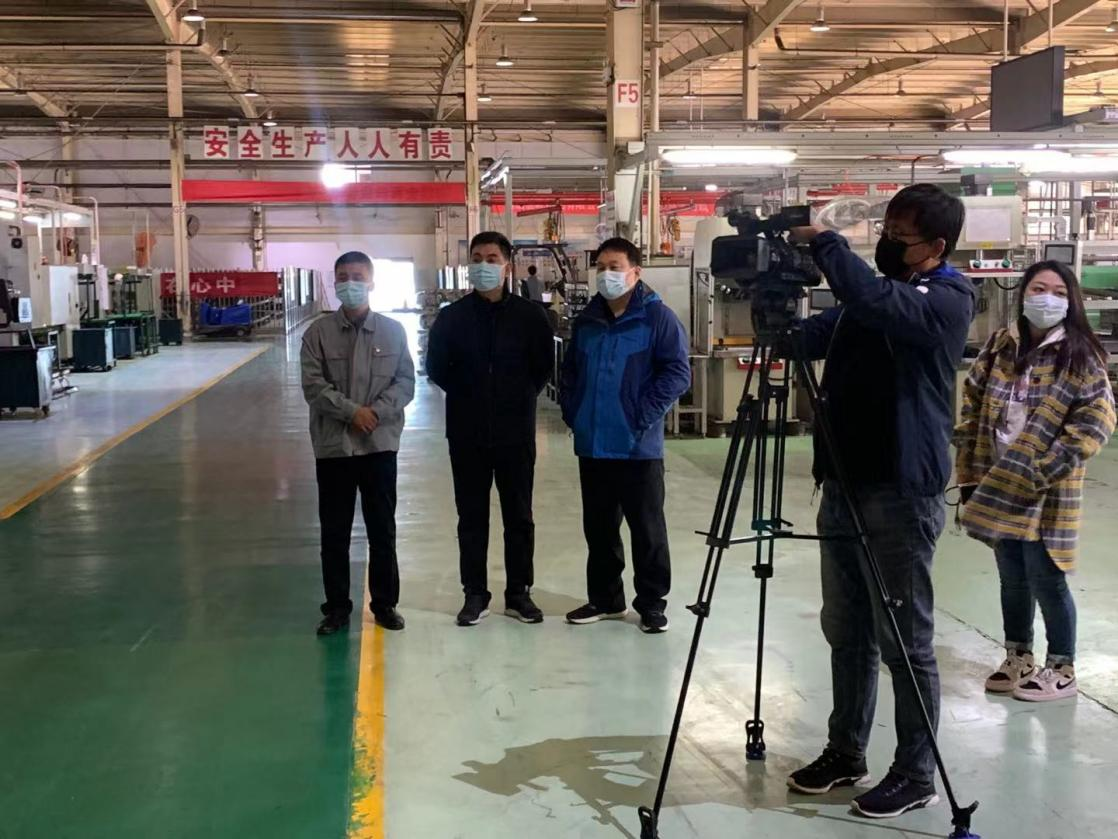 2021年11月9日上午,在唐山市人社局职建处马玉辉处长和高新区劳动监察大队刘振兴队长的陪同下,唐山电视台《唐山新闻》栏目记者王猛、魏微到唐齿集团就职工职业技能提升行动进行专题采访报道。集团党委书记、董事长邢宝昌接受现场采访,向记者简要介绍了职工职业技能提升行动的开展情况和取得的成果。