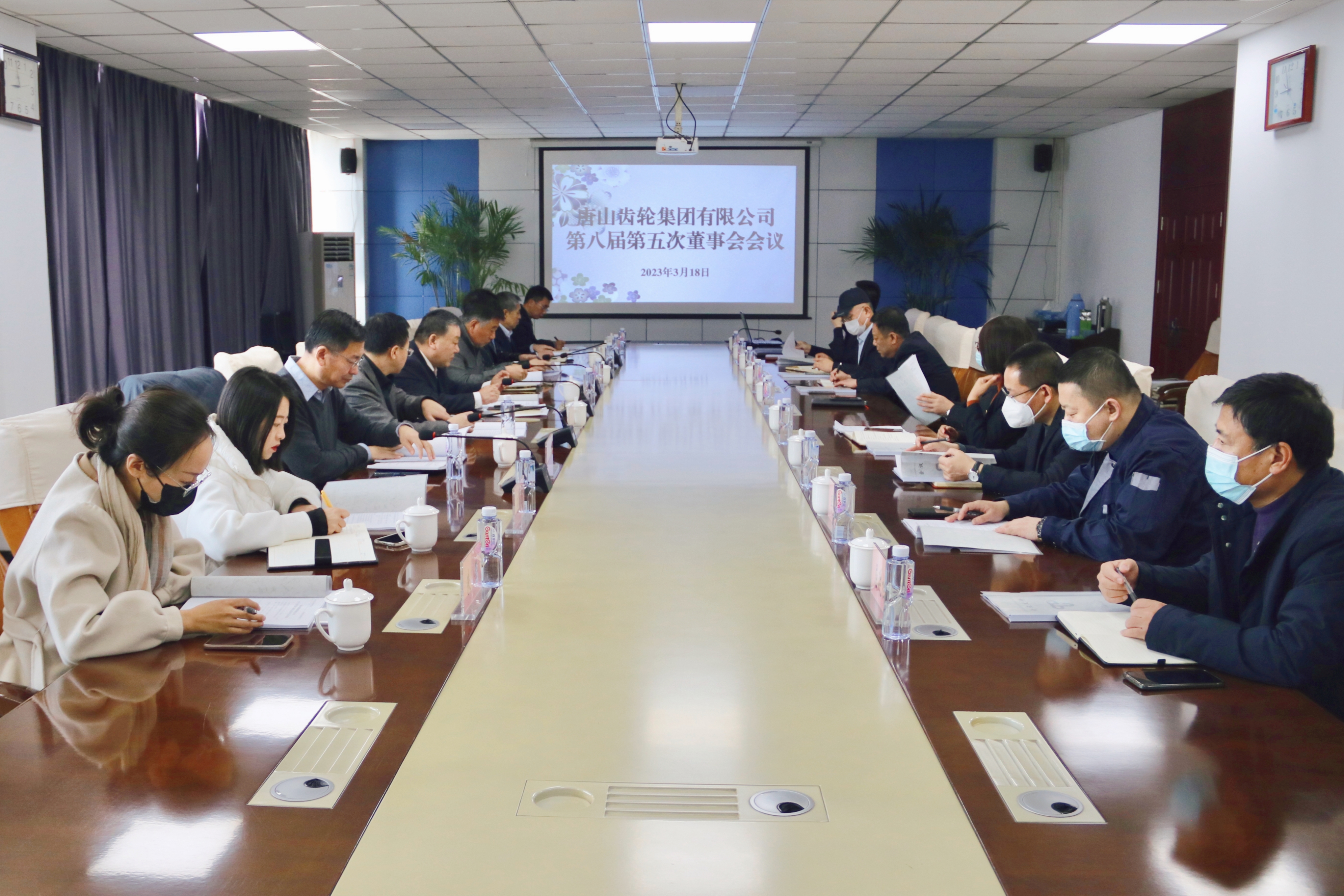 2023年3月18日,唐齿集团召开第八届第二次董事会会议。党委书记、董事长邢宝昌主持会议,全体7名内部及外部董事现场出席会议,职工监事、经营班子成员、董事会秘书、总经理助理和子公司总经理等列席会议,市国资委职能处室王冠颖、朱莹到会指导。会议听取审议了《2022年度总经理工作报告》,审议通过了《2022年度财务决算报告》《2023年度财务预算报告》等6项议案。会后举行推进集团高质量发展专题研讨会,就深入贯彻省委常委、市委书记武卫东专题调度会讲话和《市委专题会议纪要》(十一届[2023]第18号)精神、扎实推进《唐齿集团高质量发展计划和行动方案》展开研讨。