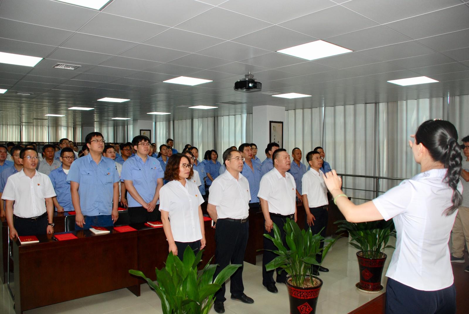会前,全体党员在集团公司本部院内,在党委班子的带领下,整齐列队,举行了隆重的升国旗唱国歌仪式。